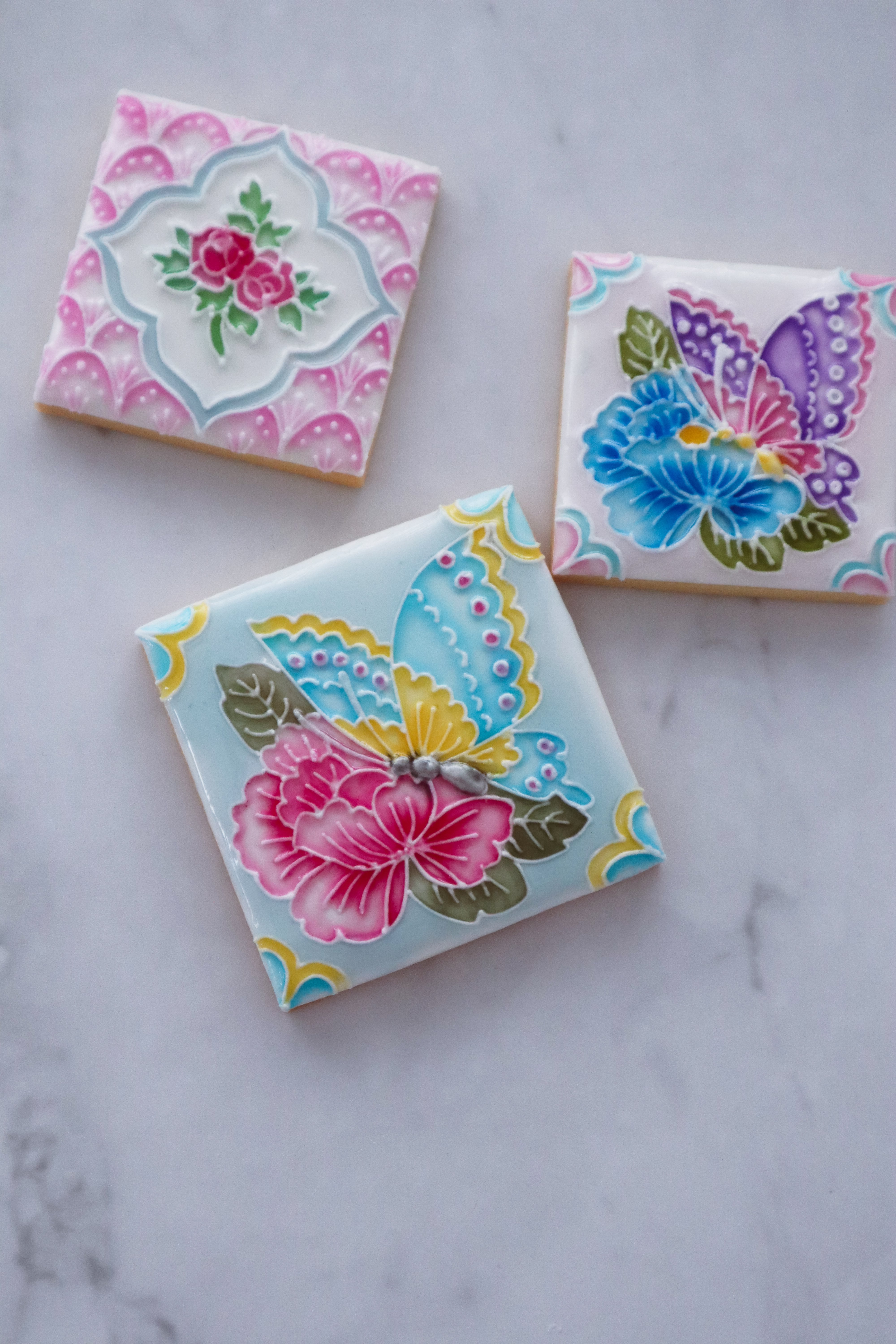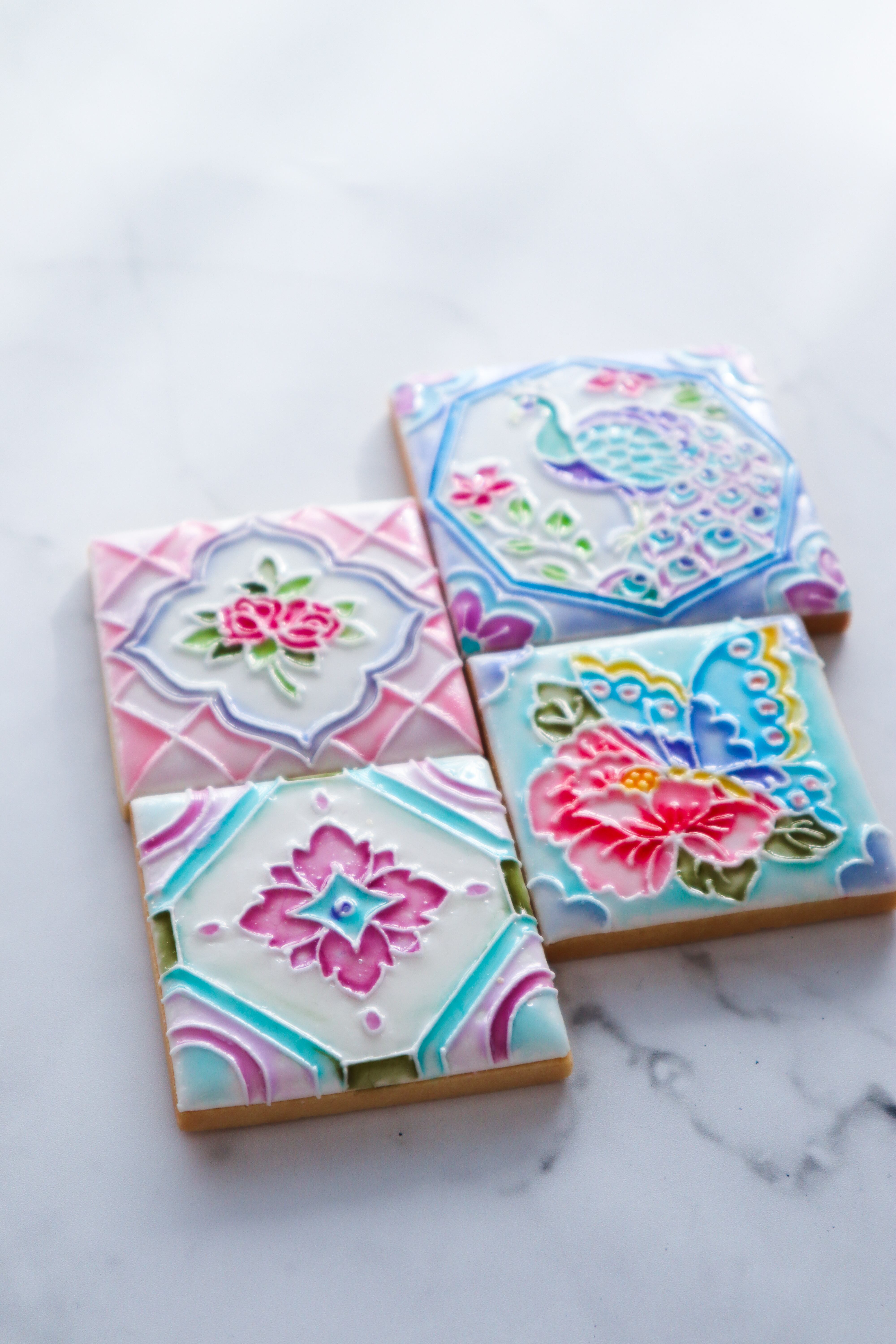 美しいアンティークタイルのようなアイシングクッキーの作り方が学べるレッスンです。